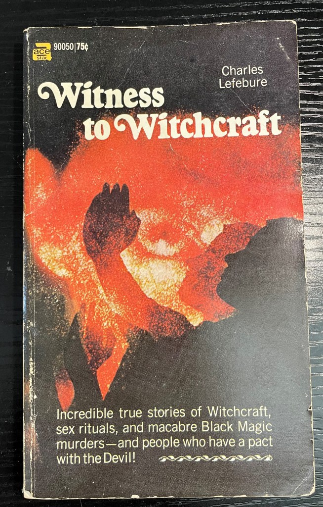 Much like the witnesses Lefebure gains his information from, I can’t find any information on the writer online aside from the titles he penned, all of which are in the same hexploitation genre and include The Blood Cults and Daughters of the Devil in addition to Witness to Witchcraft, and seem to be the same “essays and anecdotes” format. Lefebure might exist or might be an Ace book pen name, but, given the quality of the Witness to Witchcraft (even the cover is bland for a hexploitation paperback), it’s frankly not worth the effort of tracking down the truth. Why put any more effort into this book than Lefebure did, after all?